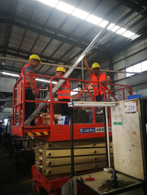 高空作業(yè),使用專業(yè)的升降工具,施工人員配有安全帽、安全帶,在確保安全情況下,進行專業(yè)的施工